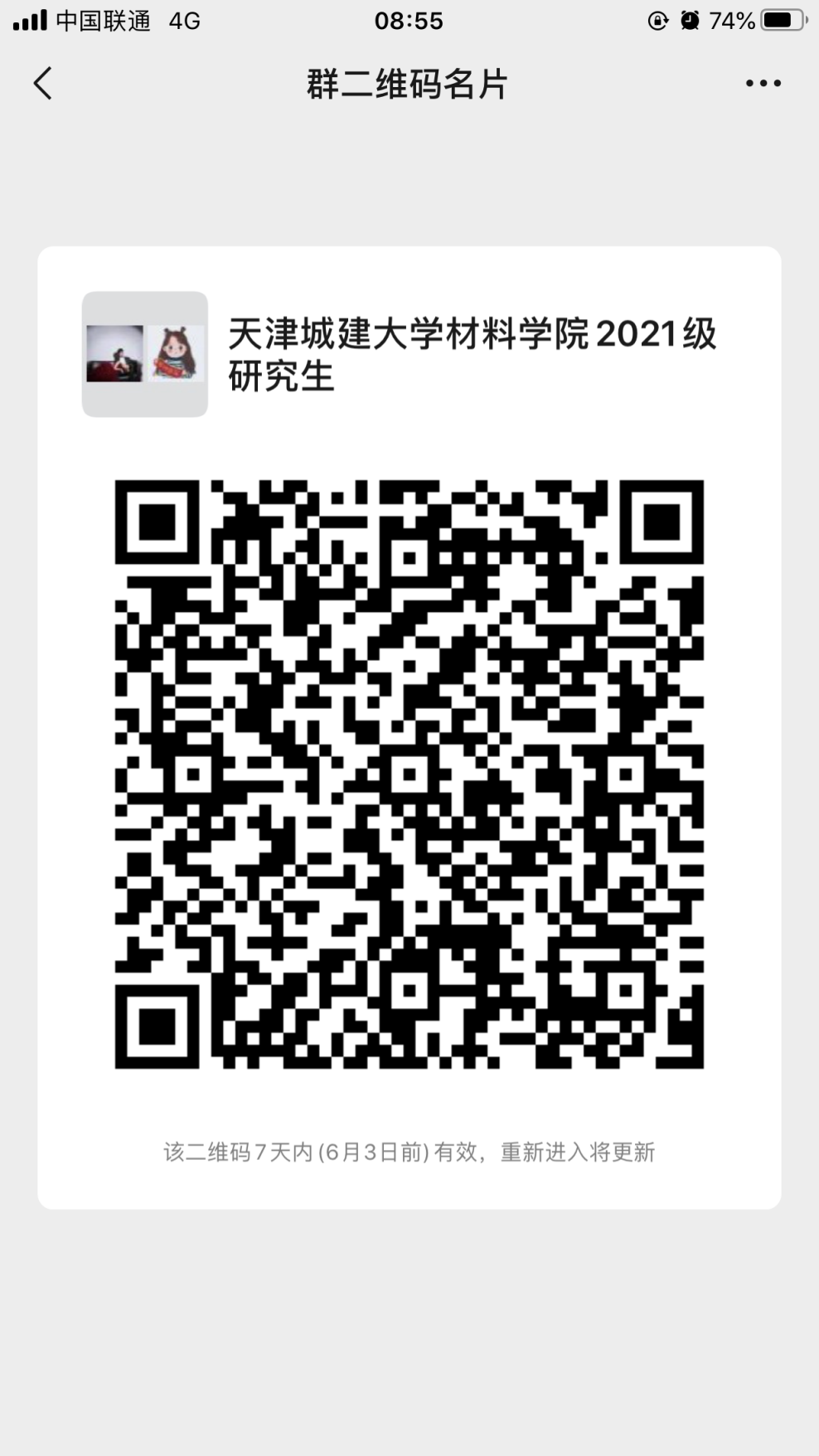 同学们可以加微信群“天津城建大学材料学院2021级研究生”方便发送通知,二维码如下: