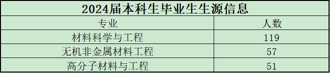 学院2024届毕业生共288人,其中本科生227人,包括材料科学与工程专业119人、无机非金属材料工程专业57人、高分子材料与工程专业51人;研究生61人,包括材料科学与工程专业8人,建筑与土木工程专业53人。