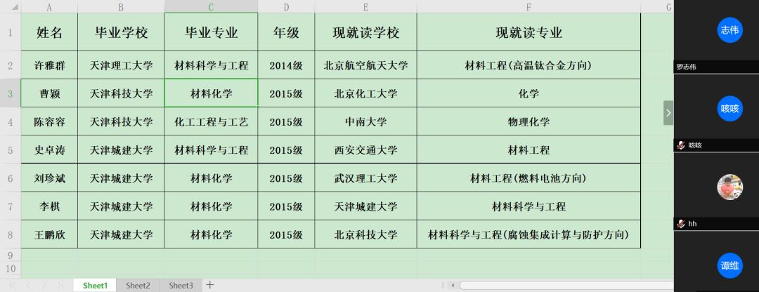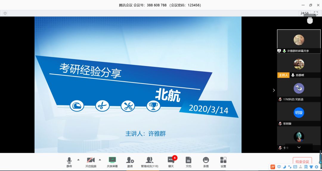 2020年3月14日,一场特别的“云端”考研经验分享会拉开了帷幕。为了帮助材料专业高年级的学生更有针对性地进行考研准备、复试,解决学生在考研方面的疑惑,同时引导低年级的学生更早地确定考研目标,在这个抗击疫情的特殊时期,beat365正版唯一官网发起,联合天津理工大学、天津科技大学beat365正版唯一官网,依托腾讯会议平台,通过线上交流的方式,开展了一场特别的考研经验分享会,共计164名同学参与了此次活动。