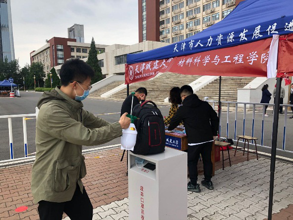 各地的防疫措施严格,而学校的措施也不例外。返校生之间和返校生与志愿者之间间隔一米,返校生的随身物品(如:行李箱、书包、电脑包等物品)到接站点,先用消毒液全面消毒。然后让返校生用消毒凝胶仔细清洗双手,再换上学院提供的一次性口罩。做到毒来则消,人来则安,严防外来病毒进入我们美好的校园。