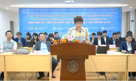 实践队员于2020年11月在全国首届建筑材料与岩土工程微生物技术国际会议上,做了题为《微生物-多孔基材协同净化污水效果研究》的学术报告,获得众多专家教授的一致好评,通过学术交流,为学术理念与成果开拓更广阔的平台。