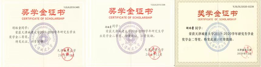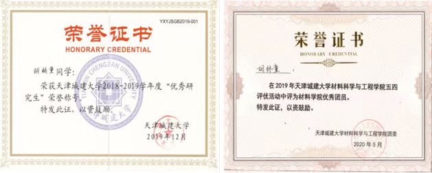 在研究生阶段,胡林童一直致力于科研能力的提升,参与发表一篇SCI论文。在毕业论文外审中,也得到了三位专家老师综合评价为优秀的好成绩,他也从对科研不甚了解的小白,逐渐蜕变成长为可以独立思考、善于实验的科研人。